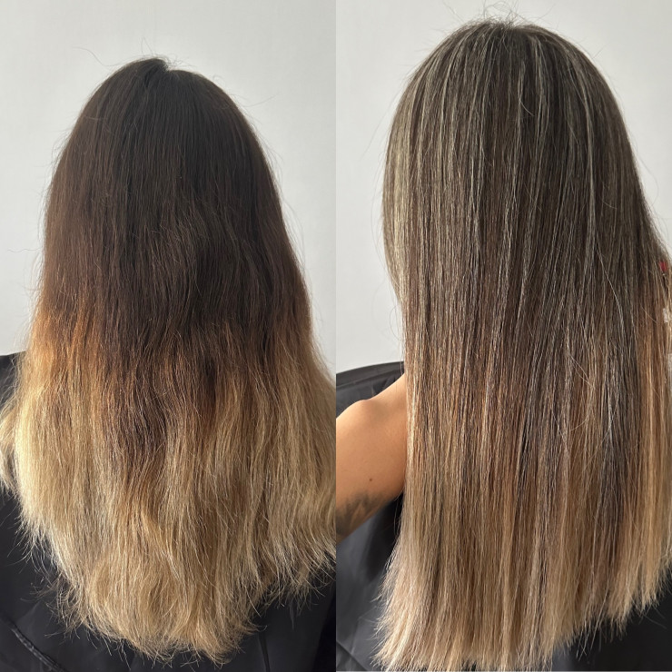 Pirms un pēc! ✨ Šajā reizē uzlabojām matu krāsojumu, izveidojot dabiskāku un spilgtāku toni, kas izceļ matu tekstūru un spīdumu. Aplīdzinājām arī matu galiņus. ?♀️