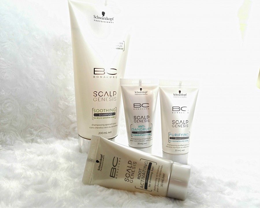 Schwarzkopf Professional BC Bonacure sērijā radīti šampūni jutīgai galvas ādai - Scalp Genesis. Soothing paredzēts sausai un jutīgai galvas sādai; Anti-Dandruff - pret blaugznām; Root Activating - plāniem matiem; Purifying - attīrošs šampūns normālai, taukainai galvas ādai.
