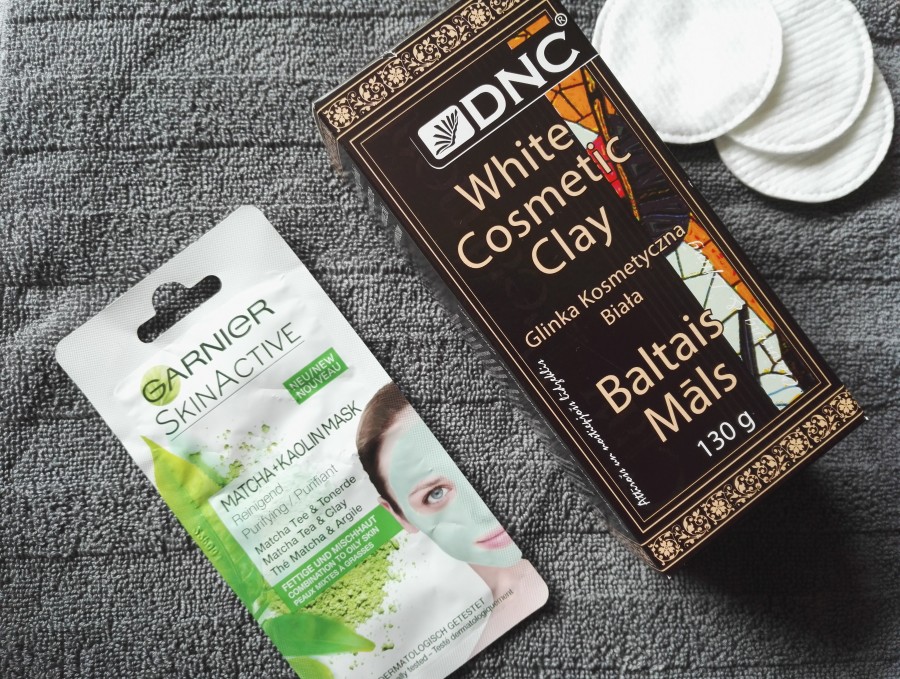 Esmu izvēlējusies divus produktus, kas satur kaolīnu - DNC Balto kosmētikso mālu un uz šī produkta kastītes iepakojuma piedāvā vairākas receptes sejas masku pagatavošanai. Otra maska ir no Garnier - SkinActive Matcha + Kaolin maska, kas ir gatava maska tūlītējai lietošanai.