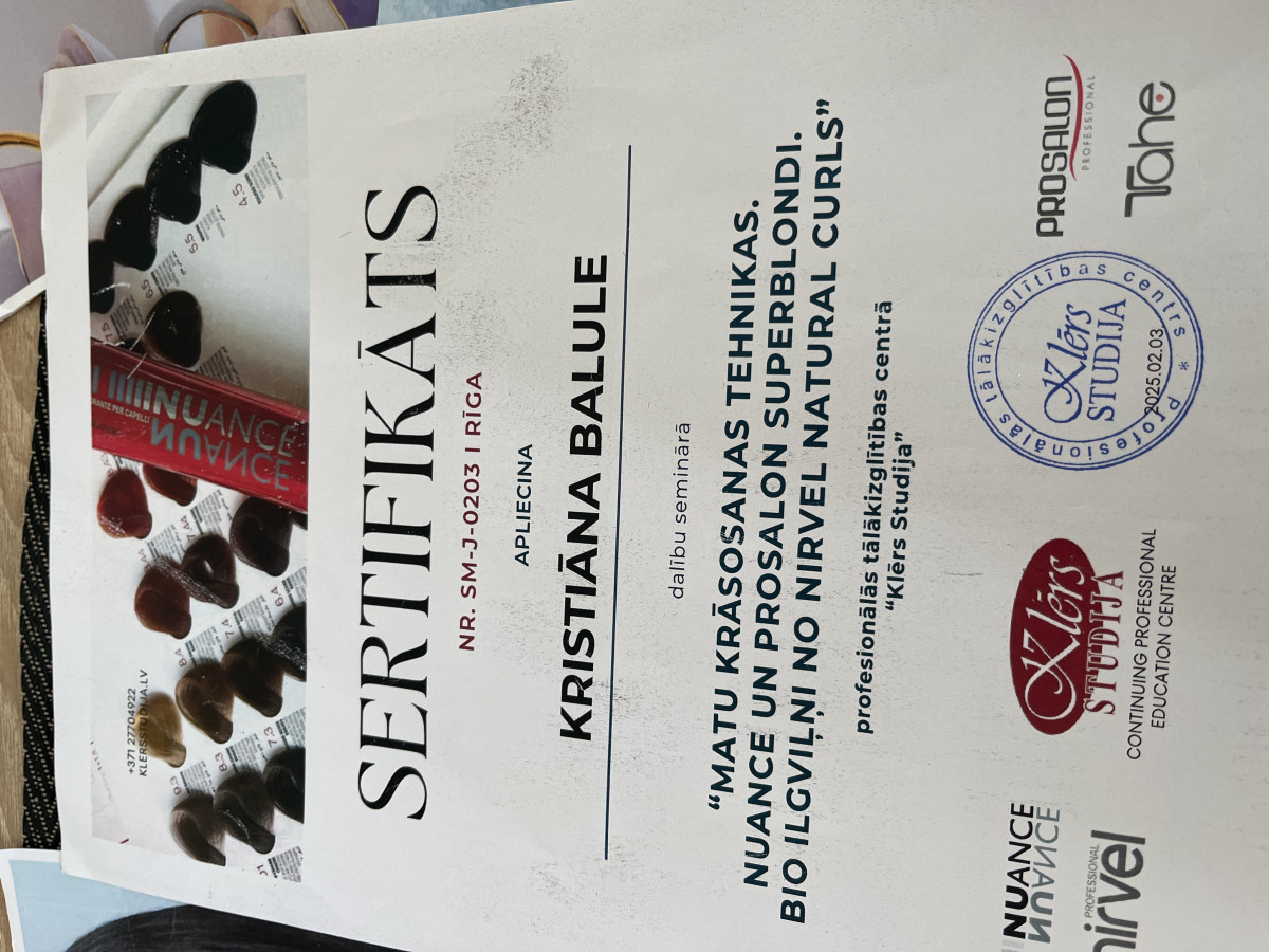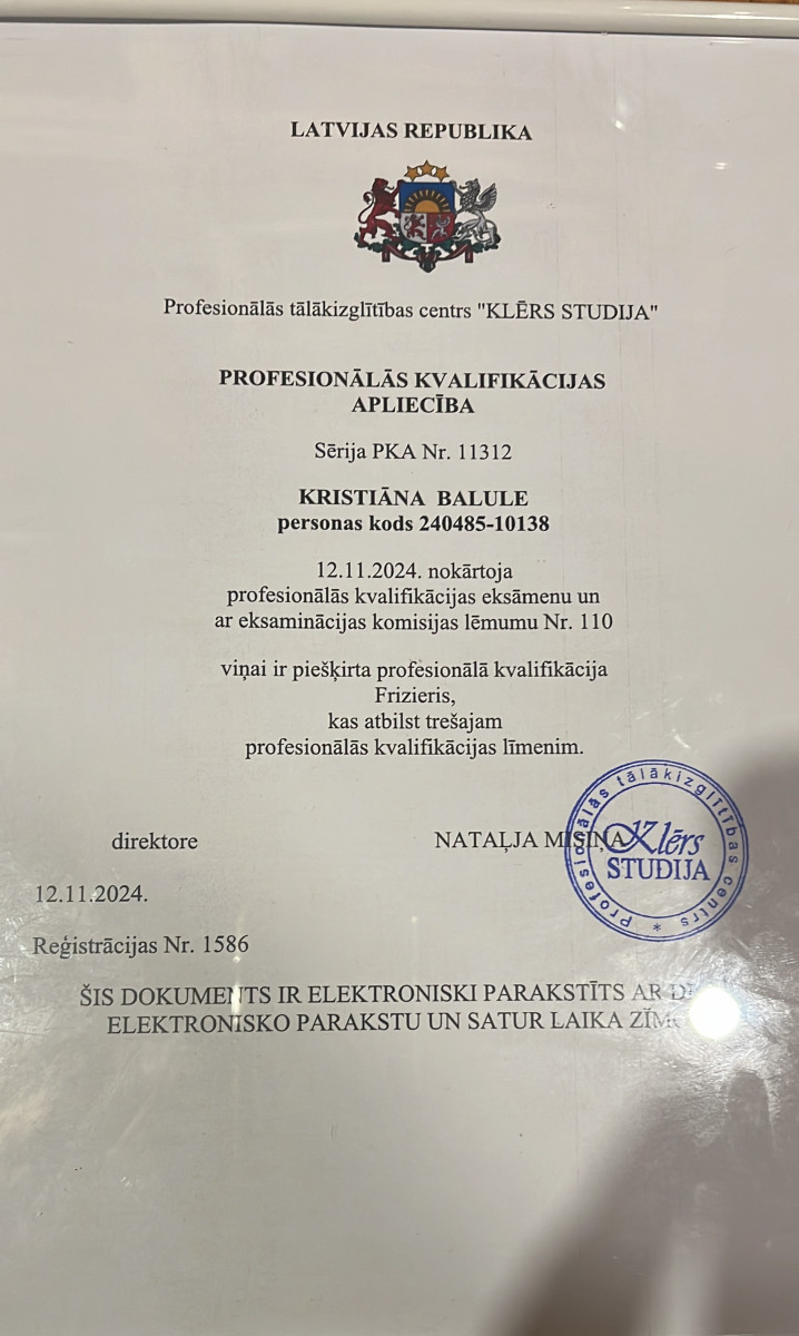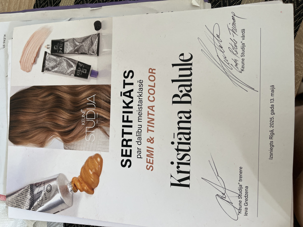 Esmu friziermeistare Kristiana, kura aktīvi darbojas skaistumkopšanas jomā kopš 2024. gada. Savā darbā īpašu uzmanību pievēršu kvalitātei, precizitātei un individuālai pieejai katram klientam. Veicu sieviešu un vīriešu matu griezumus, matu krāsošanu vienā vai divos toņos, kā arī šķipsnu... Skatīt visu aprakstu