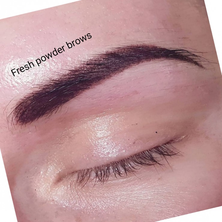 Uzacis pūdertehnikā uzreiz pēc procedūras, sadzīstot krāsa kļūs gaišāka!