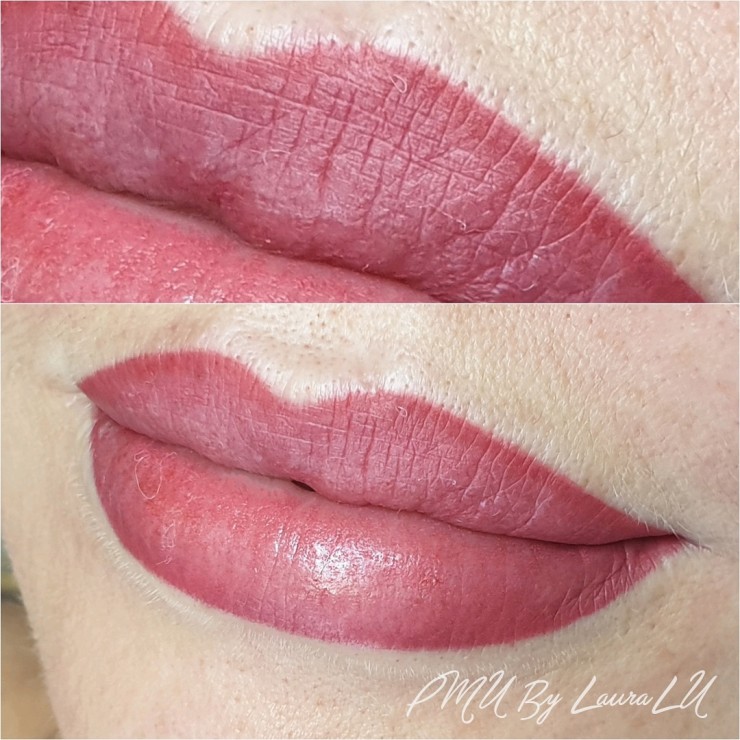 Lūpu permanentais meikaps ar izteiksmīgāku kontūru.