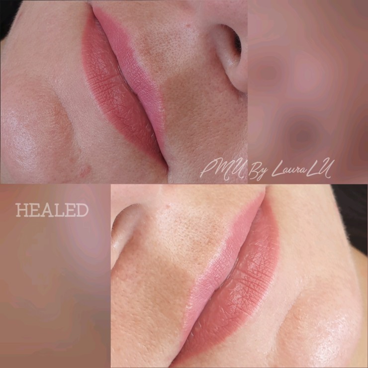 Sadzijis lūpu permanentais meikaps pirms korekcijas.
