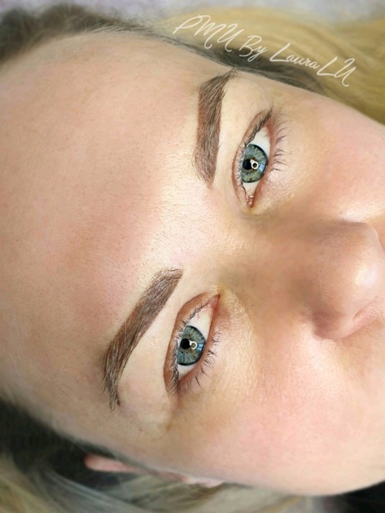 Uzacu mikropigmentācija uzreiz pēc procedūras.