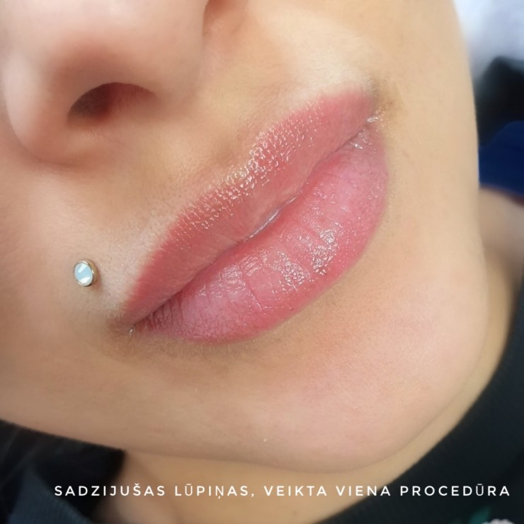 Sadzijis lūpu permanentais meikaps, veikta 1 procedūra.
