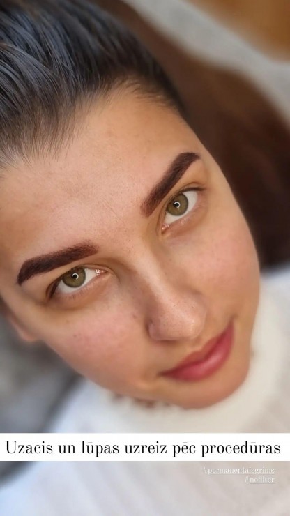Uzacu un lūpu permanentais meikaps uzreiz pēc procedūras.