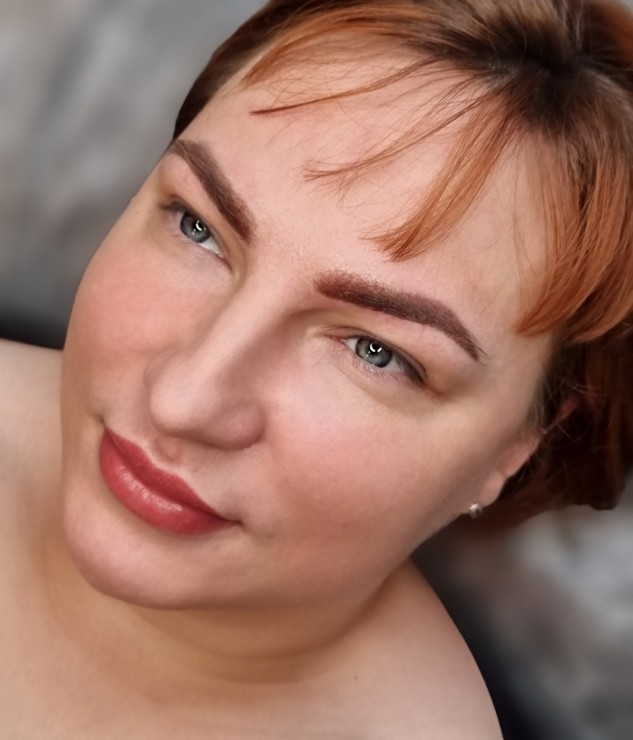 Izteiksmīgas permanentās uzacis un lūpiņas, kā arī sadzijusi starpskropstu līnija (veikata 1 procedūra).