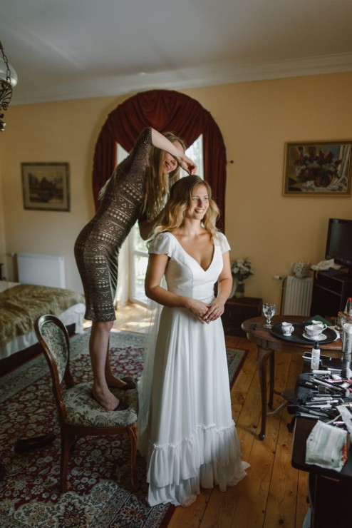 Grims un frizūra līgavai. Līgavas sapošana kāzām. Plīvura piestiprināšana.