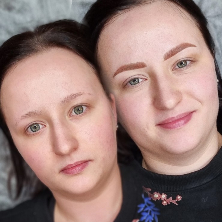Uzacu permanentais meikaps pirms un pēc procedūras