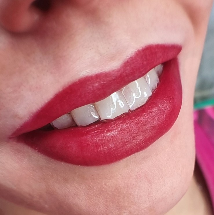 Lūpas uzreiz pēc permanentās procedūras.
